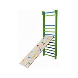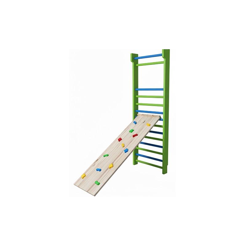 Presentamos el rocódromo infantil fabricado con una pieza de madera, barnizada al natural.