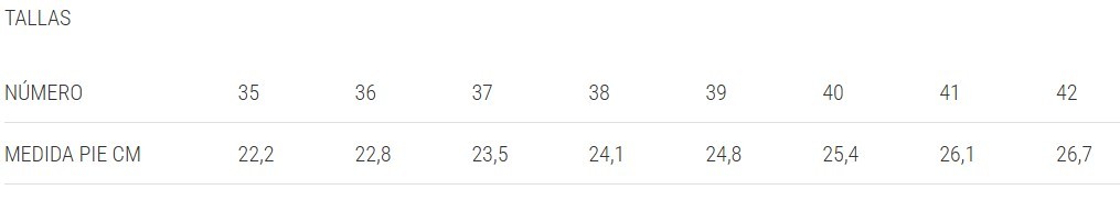 - Plantilla interior: Viscoelástica con fibras de poliéster.