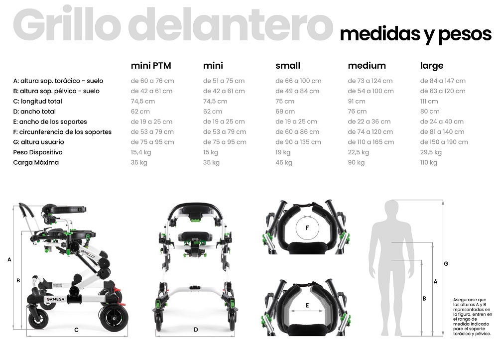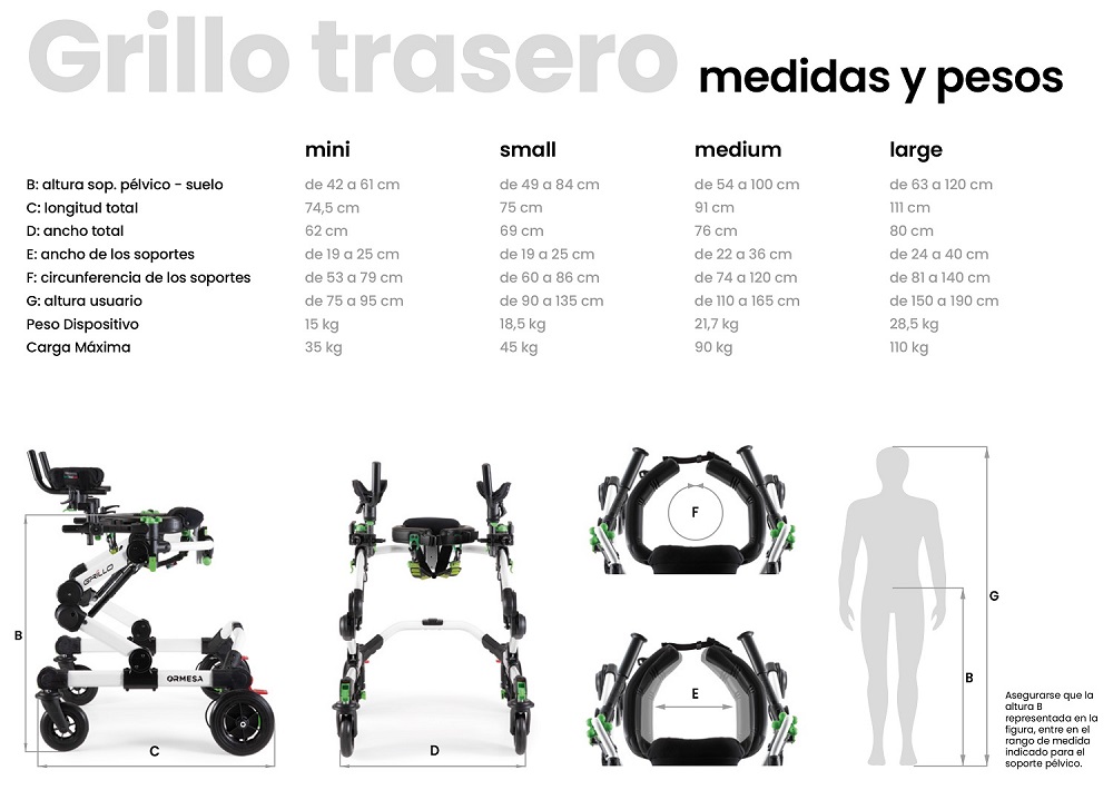 Más información sobre Andador y rehabilitador de la marcha Grillo Talla S