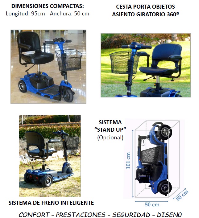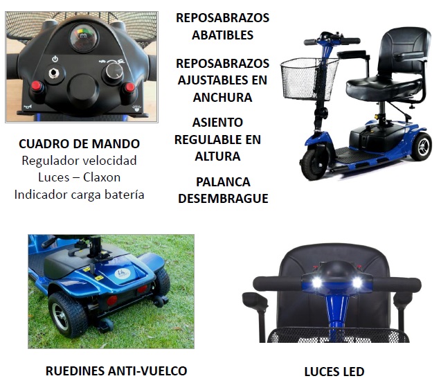 Scooter eléctrico de 3 ruedas, baterías litio.