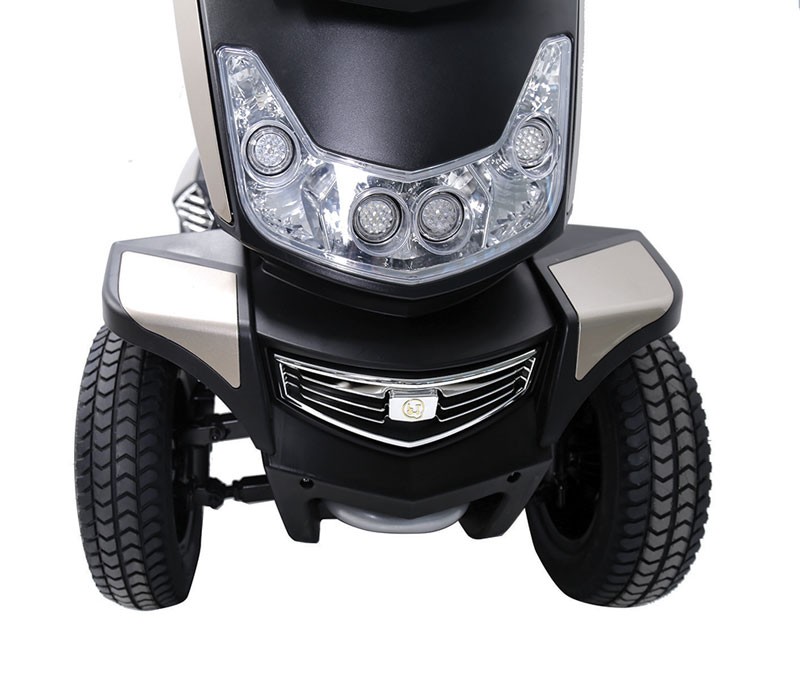 - Scooter eléctrico de 4 ruedas de gran resistencia y estabilidad.