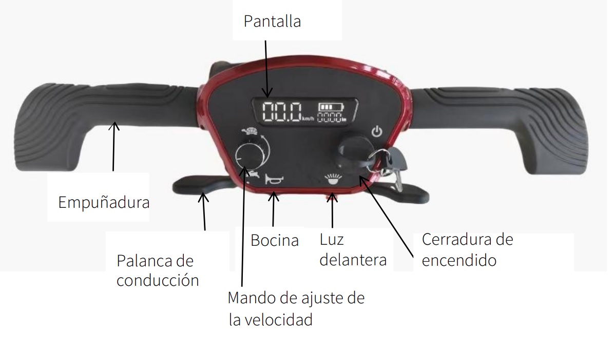 - Timón regulable en altura para una postura cómoda y ergonómica.