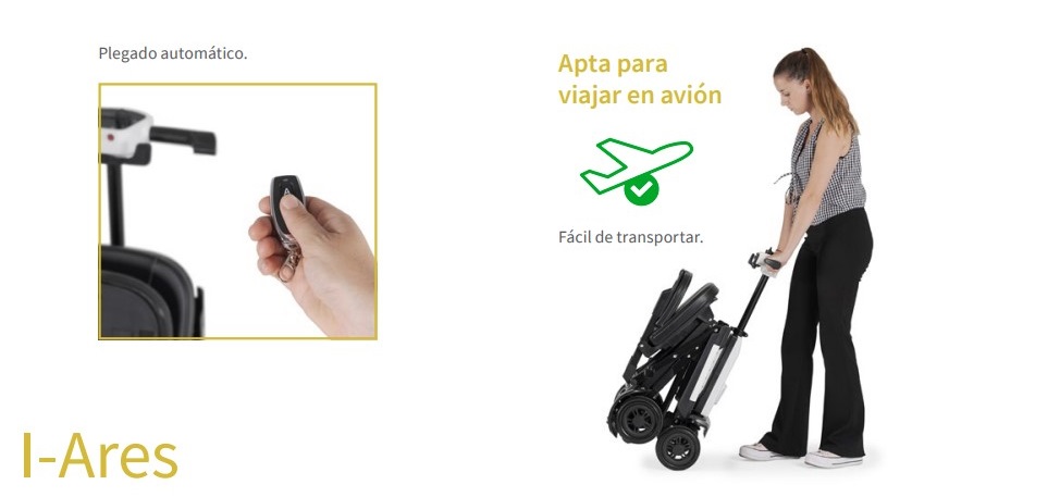 Con ruedas antivuelco, luz LED y certificado para viajar en avión, ofrece seguridad y confianza a personas mayores o con movilidad reducida.