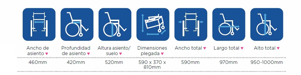- Dimensiones plegada: 590 x 370 x 810 mm