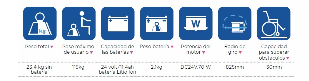 - Capacidad de las baterías: 24 V / 11.4 Ah batería Litio Ion