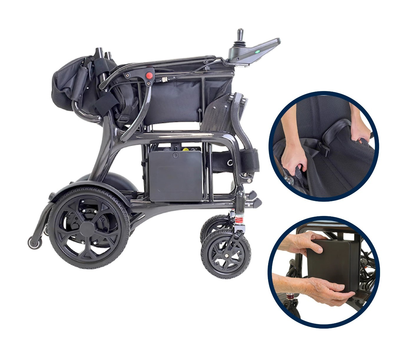 Silla de ruedas eléctrica plegable ultraligera de fibra de carbono.