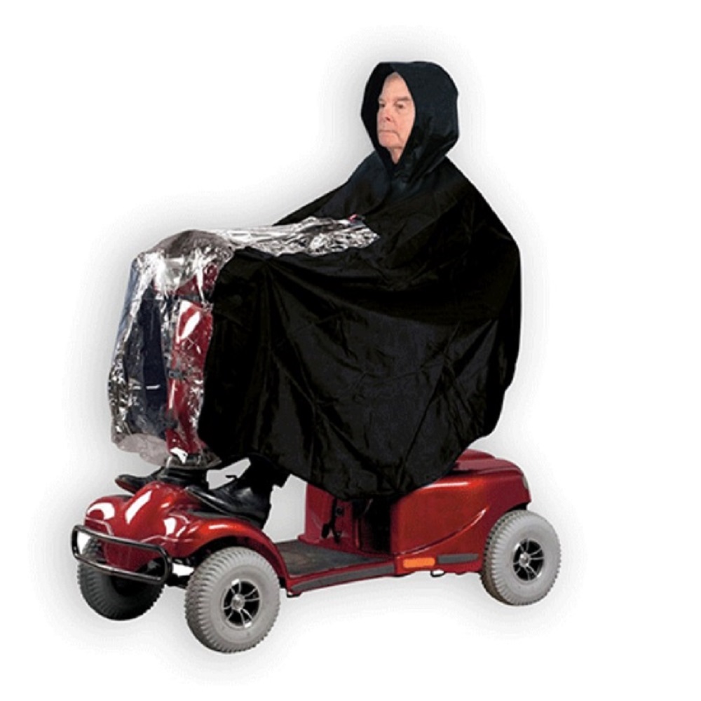 El chubasquero poncho para scooter eléctrico protege de la lluvia al usuario de sillas de ruedas y scooter, de la cabeza a los pies.