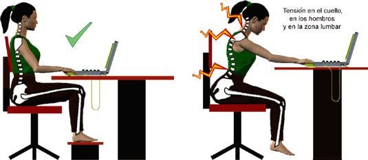 Si te sientas muy bajo, acabas tensando el cuello tenso y si tu asiento está muy alto, tus estresas los músculos de los hombros y acabarás cansado.