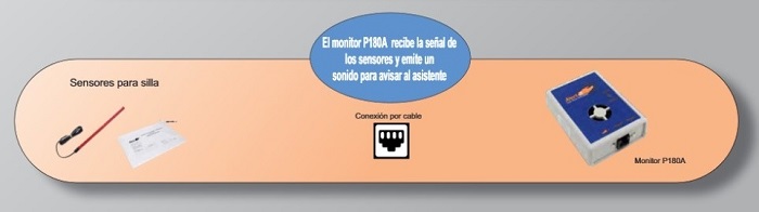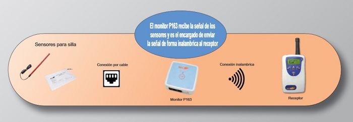 Podemos elegir distintos dispositivos para colocar en la cama o en la silla o sillón. Cualquiera de estos dispositivos, deben conectarse al monitor (P163BAA)