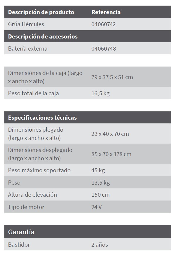 Esta grúa puede ser utilizada bien con la batería de la scooter o con su batería externa (no incluída).